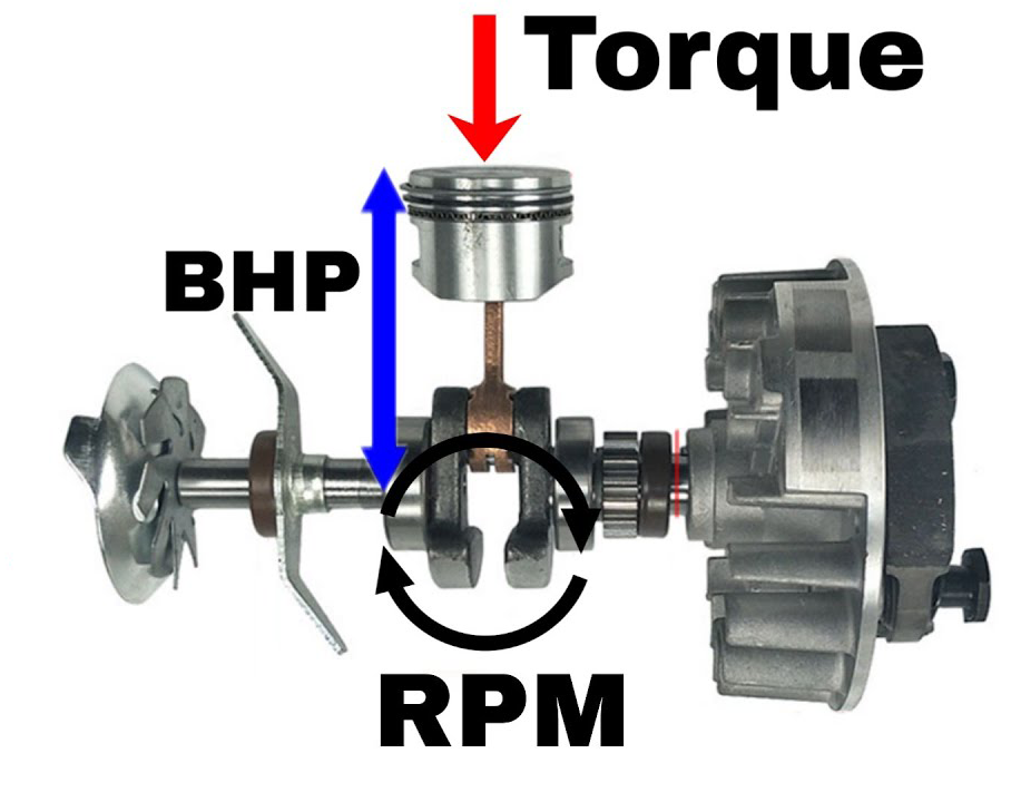 แรงบิดที่เกิดจากแรงอัดลูกสูบทำให้เกิดรอบในเครื่องยนต์ส่งกำลังไปที่เพลา